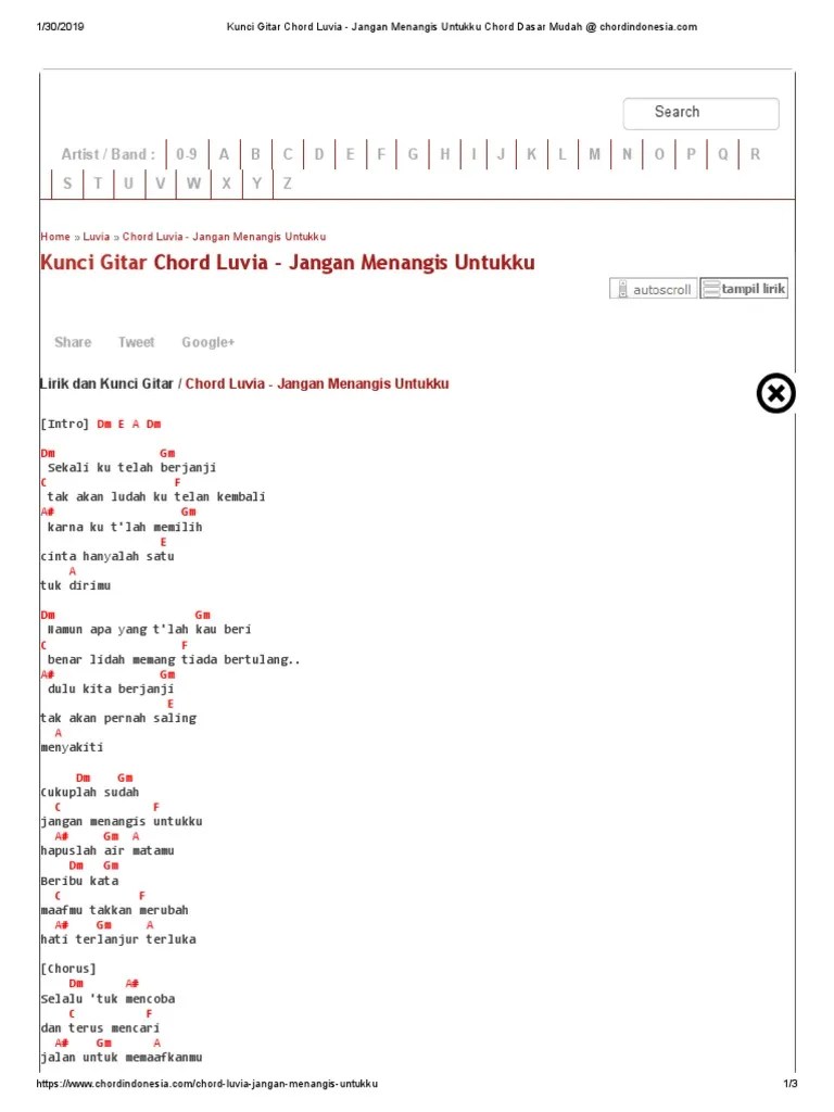 Cocok untuk gitar kentrung senar 4, kentrung senar 3. Ok sobkali ini saya akan membahas chord dan petikan gitar lagu dari luvia yang berjudul jangan menangis untukku versi mudah jadi menggunakan . Chord dan lirik lagu judika mama. G c maafmu takkan merubah Am f selalu tuk mencoba g c dan terus mancari. F dm e hapuslah air matamu. Karna ku t'lah memilih b cinta hanyalah satu e tuk dirimu . Luvia jangan menangis untukku intro. Am dm sekali ku telah berjanji g c tak akan ludah ku telan kembali. Menyakiti am dm cukuplah sudah g c . Lirik dan kunci gitar chord luvia jangan menangis untukku intro dm e a dm dm gm sekali. Lirik lagu cukuplah sudah jangan menangis untukku info dan tips. Am dm sekali ku telah berjanji g c tak akan ludah ku telan kembali f dm ….